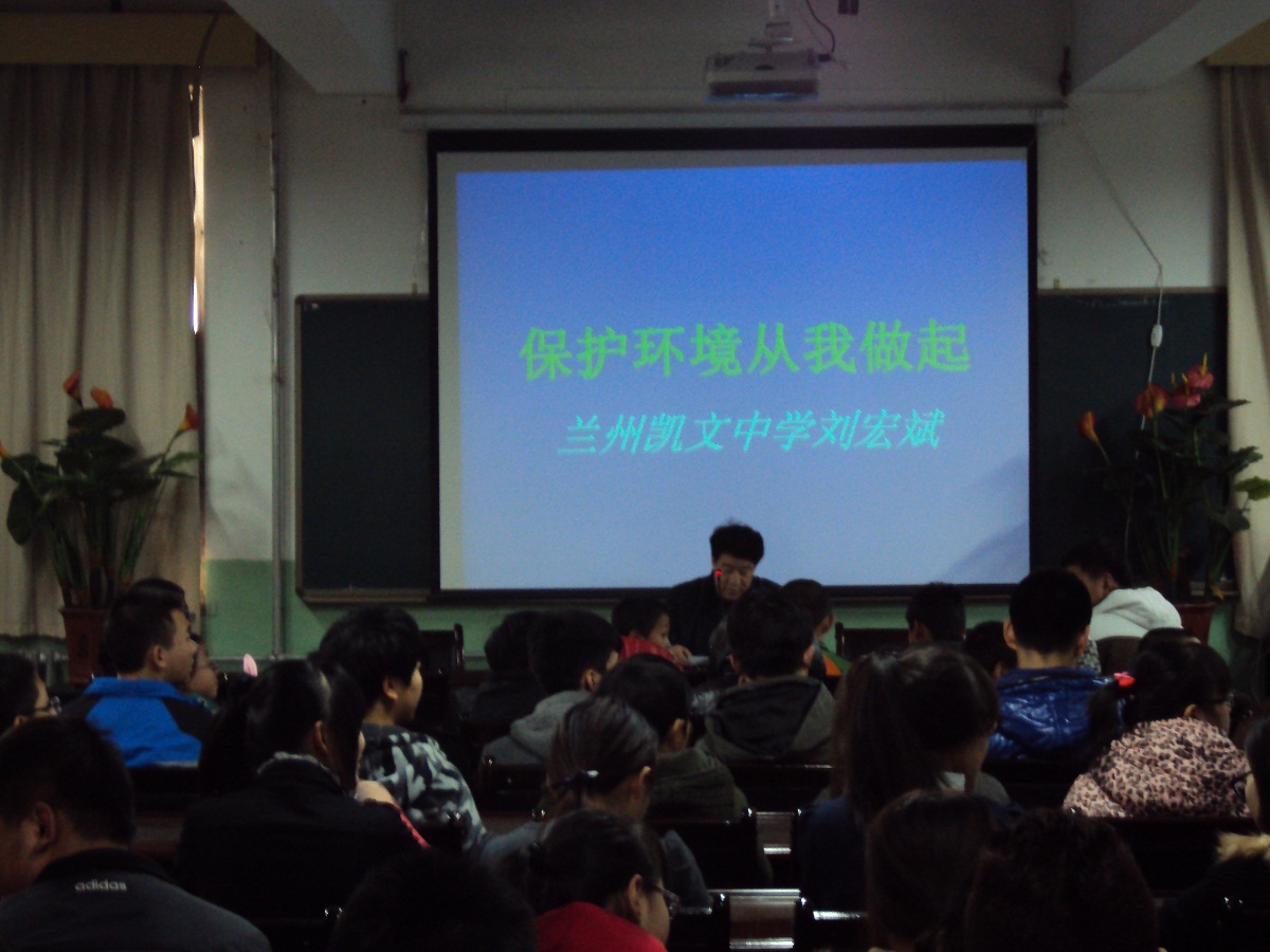 其次,主讲老师刘宏斌为全校师生做了一次非常精彩生动的环保知识讲座,重点讲述了兰州市大气污染的成因、现状、目前的防治措施以及我们身边可以采取治污的小行动。整场讲座专业性强、现场气氛活跃、全校师生认真聆听,收到了良好的预期效果,使全校师生加深入对大气污染有关知识的进一步了解。